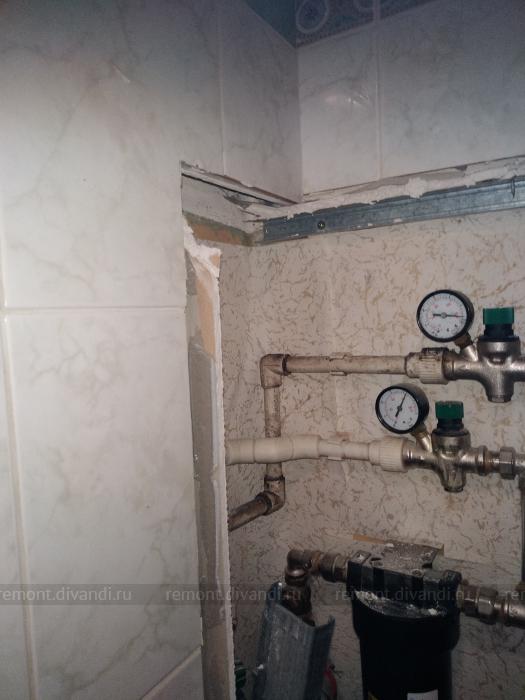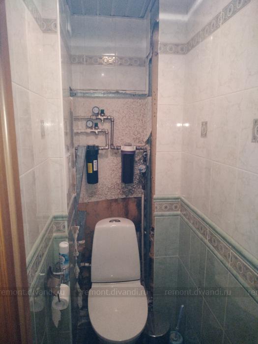 Восстановить короб и облицовку в туалет после замены труб канализации и водоснабжения. Разобрали короб из гипсокартона и демонтировали плитку для проведения работ.