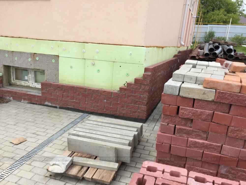 Кладка декоративного цоколя дома в полкирпича. Кирпич «рваный камень» в наличии. Объём работ 40 кв м.