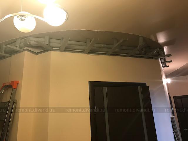 Нужно из гипсокартона сделать потолочные короба (закрыть трубы). Монтаж карнизов с шпатлевкой стыков и покраской. Оклеивание стен обоями.